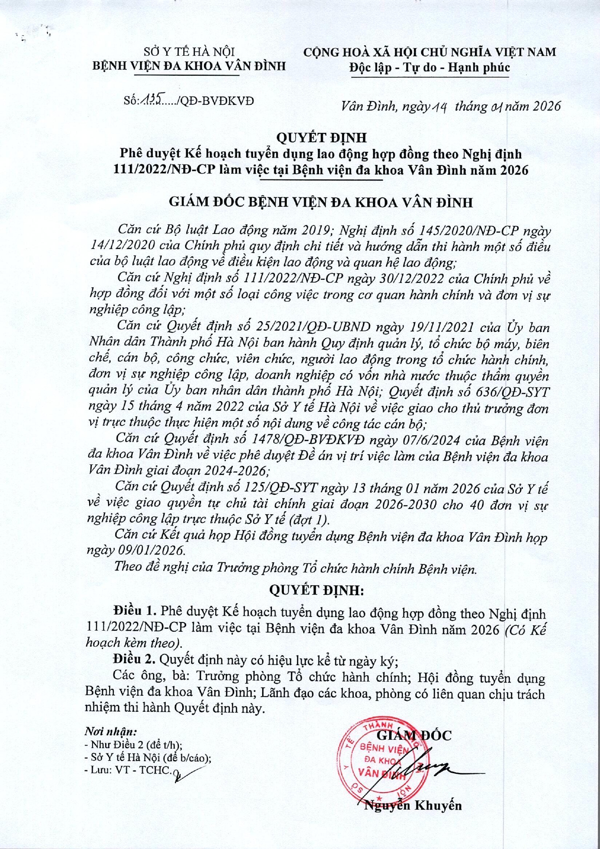 111/2022/NĐ-CP làm việc tại Bệnh viện đa khoa Vân Đình năm 2026