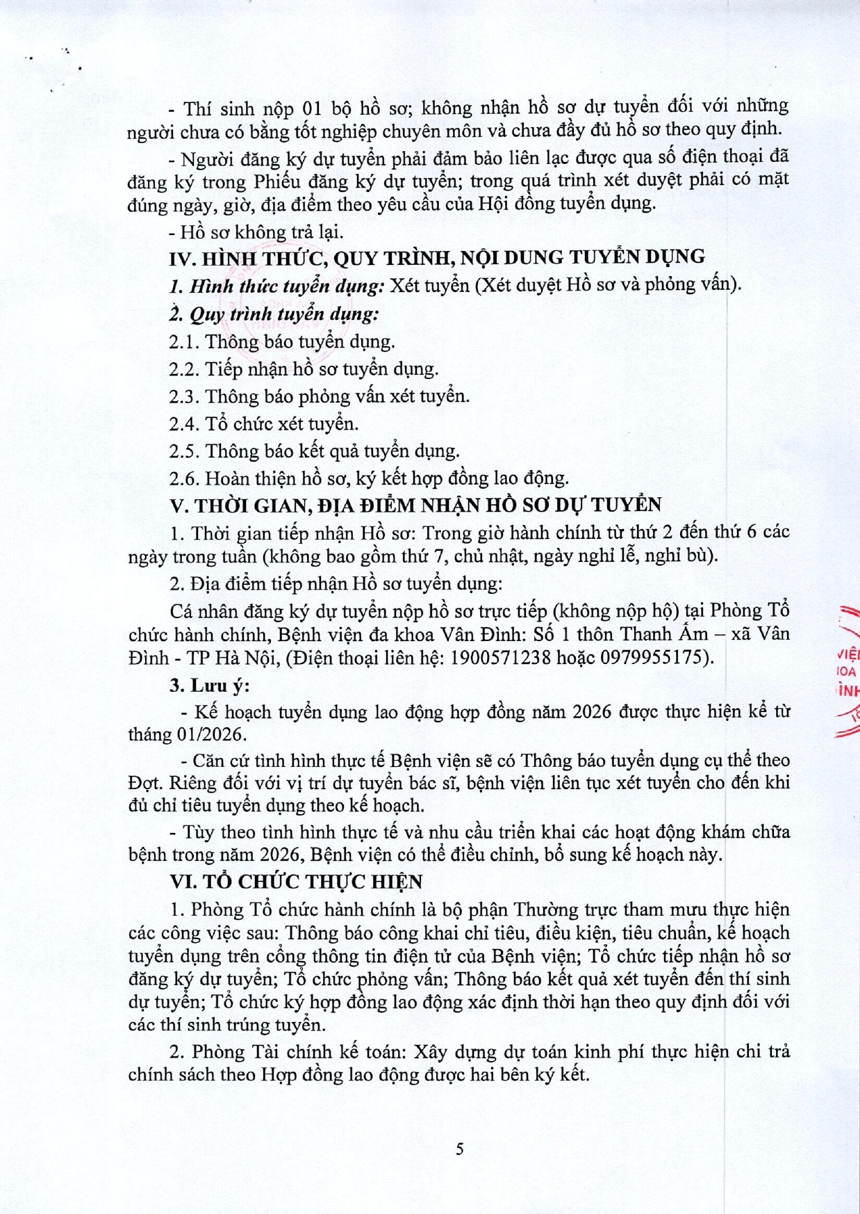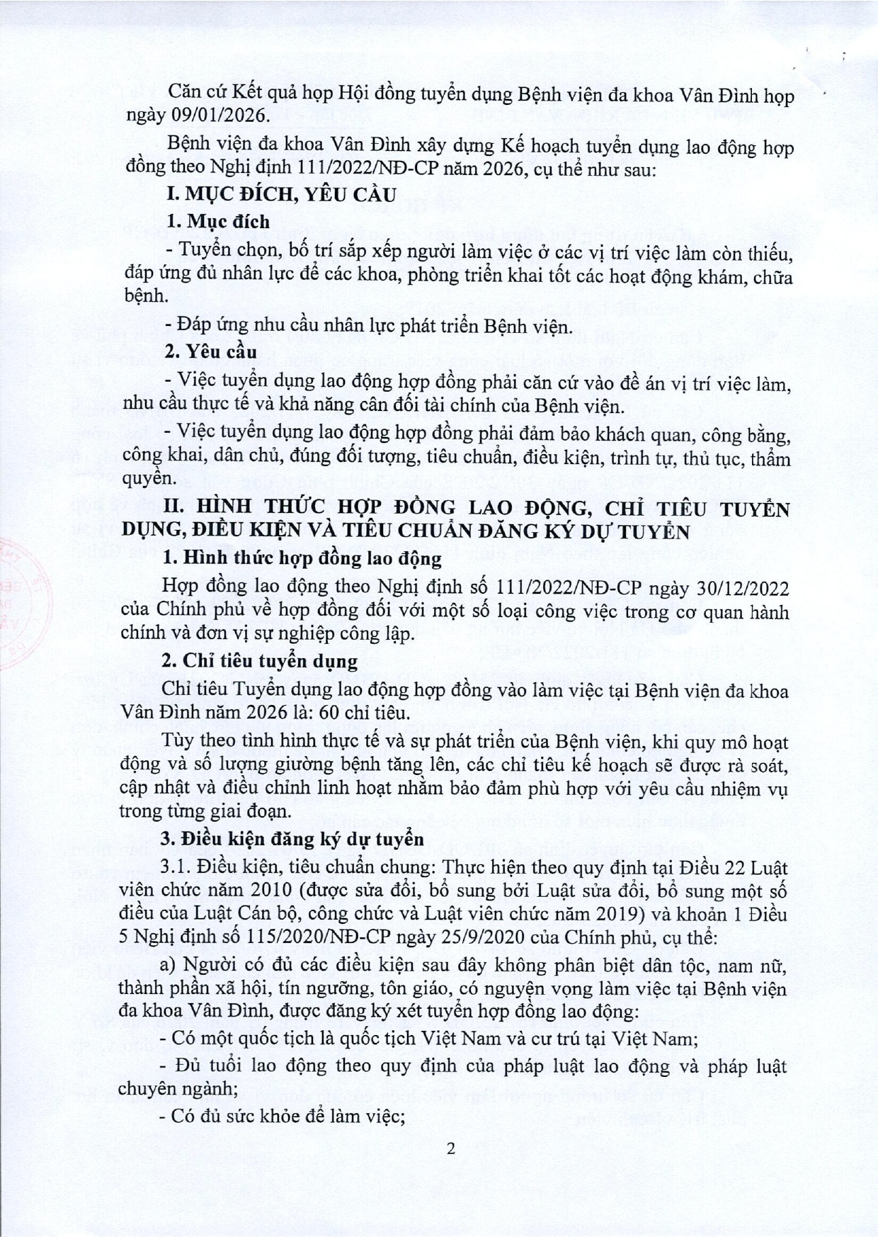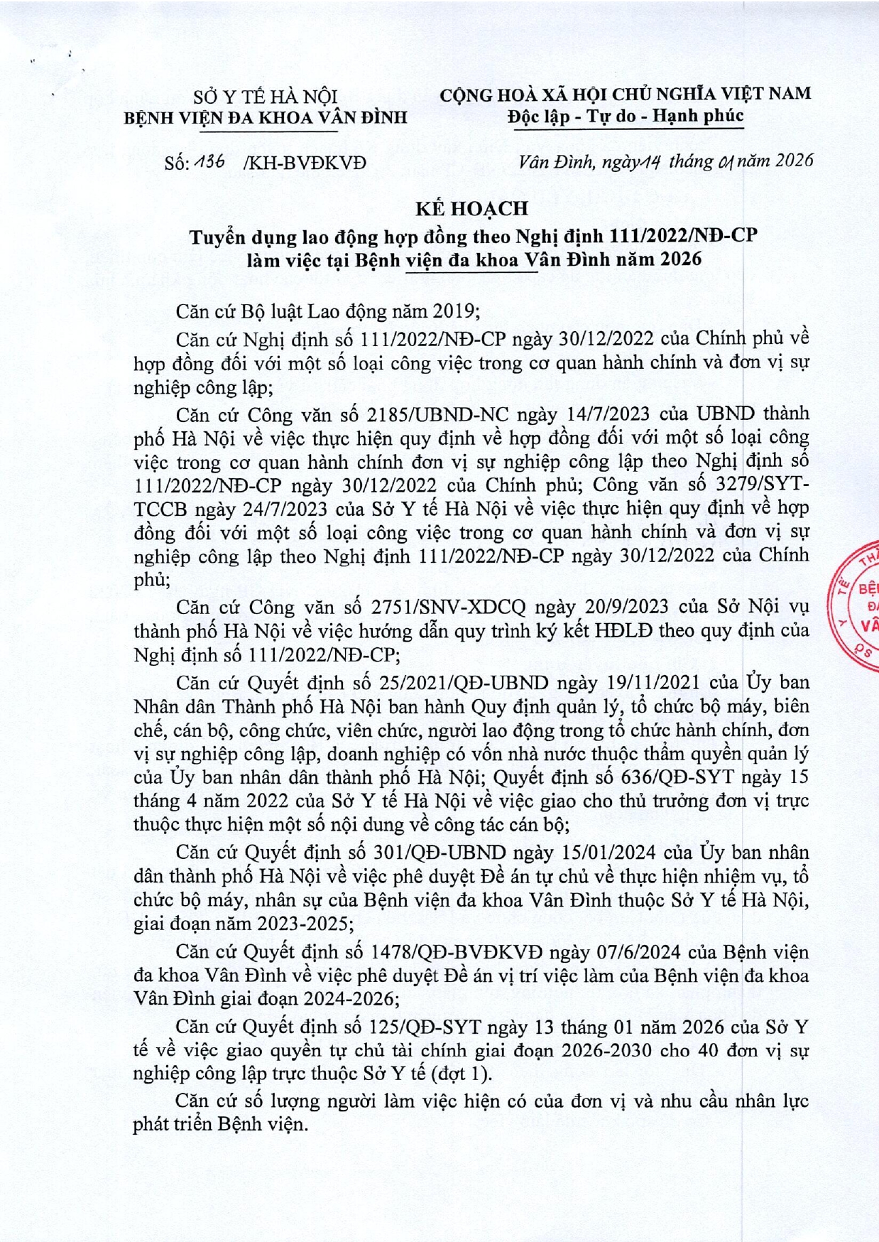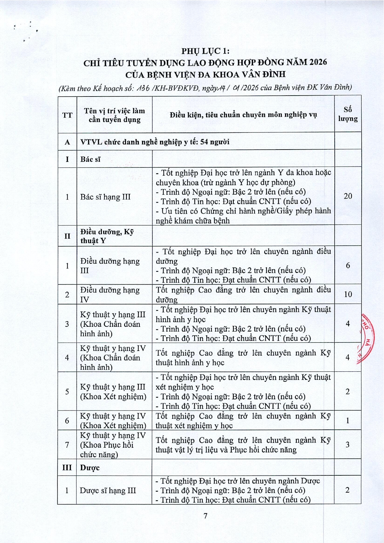 Chi tiết xem tại đây: Kế hoạch tuyển dụng LĐHĐ tại BVĐK Vân Đình năm 2026