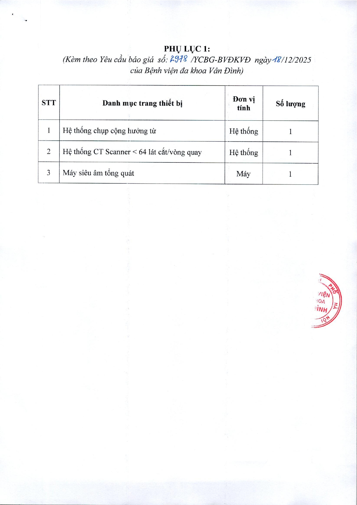 Về việc thuê tư vấn lập cấu hình, thông số kỹ thuật Dự toán mua sắm thiết bị chuyên khoa chẩn đoán hình ảnh năm 2026 của Bệnh viện đa khoa Vân Đình